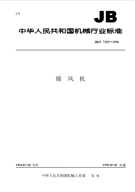 目前,國(guó)內(nèi)的工業(yè)暖風(fēng)機(jī),包括熱水暖風(fēng)機(jī)、蒸汽暖風(fēng)機(jī)執(zhí)行的質(zhì)量技術(shù)標(biāo)準(zhǔn)為JB/T 7225-1994《暖風(fēng)機(jī)》機(jī)械行業(yè)標(biāo)準(zhǔn),